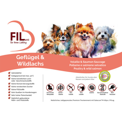 Exklusiv nur bei Fil AG – Für Lieblinge und ausgewählten Tierfutter Geschäften, Züchtern und Züchterinnen erhältlich. Schweizer Rezeptur